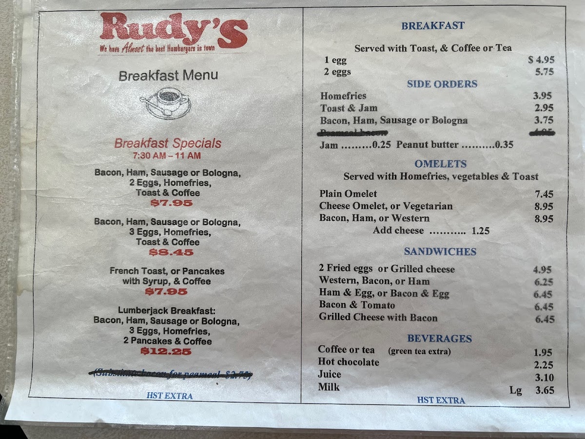 Rudy's Restaurant Menu